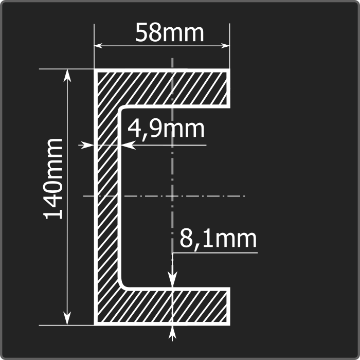 Швеллер стальной горячекатаный с параллельными гранями полок 14П и длиной 12м. Материал - углеродистая сталь. Соответствует требованиям ГОСТ 27772-2021.
