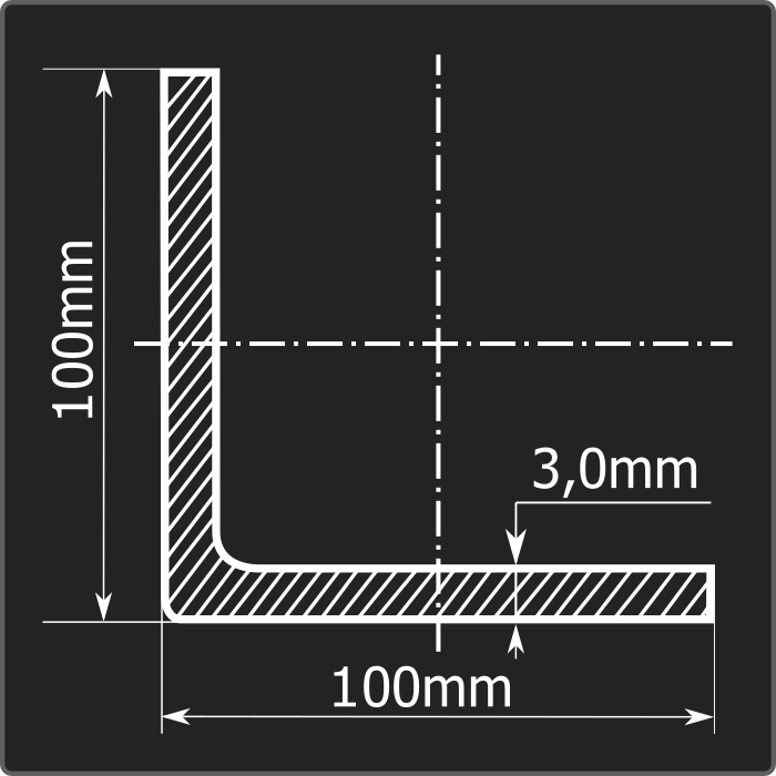 Угол стальной холоднокатаный гнутый равнополочный 100*100мм, толщиной 3,0мм и длиной 12м. Материал - углеродистая сталь. Соответствует требованиям ГОСТ 19771-93.