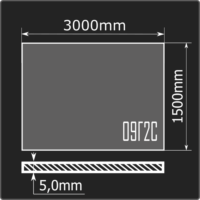 Лист стальной горячекатаный толщиной 5,0мм, шириной 1500мм и длиной 3000мм. Материал - низколегированная сталь. Соответствует требованиям ГОСТ 19281-2014.