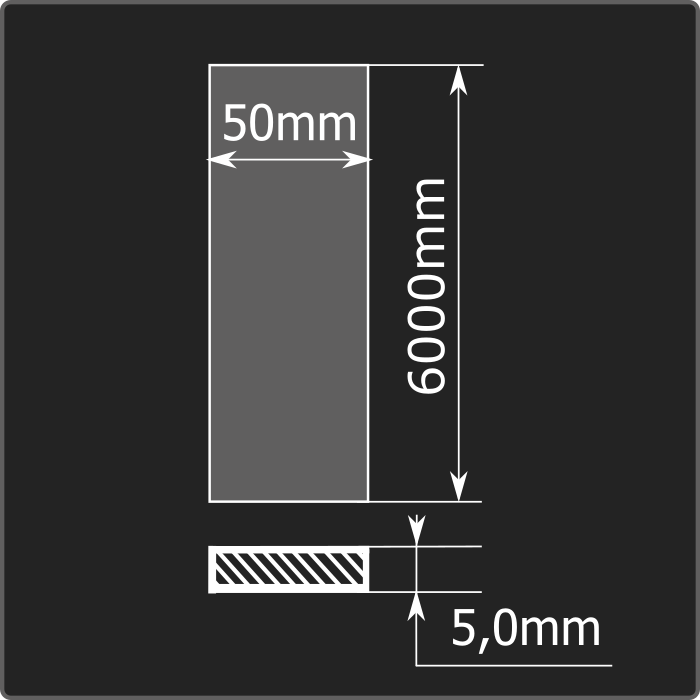 Полоса стальная горячекатаная толщиной 5,0мм, шириной 50мм и длиной 6м. Материал - углеродистая сталь. Соответствует требованиям ГОСТ 103-2006.