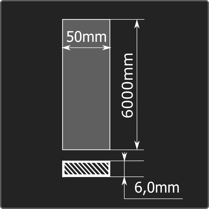 Полоса стальная горячекатаная толщиной 6,0мм, шириной 50мм и длиной 6м. Материал - углеродистая сталь. Соответствует требованиям ГОСТ 103-2006.