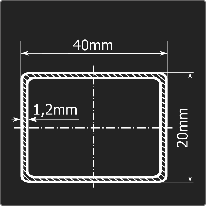 Труба профильная стальная прямоугольного сечения 40*20мм, длиной 6м и толщиной 1,2мм. Материал - углеродистая сталь. Соответствует требованиям ГОСТ 13663-86. Стандартный пакет: вес - 1,541тн., количество - 240шт.